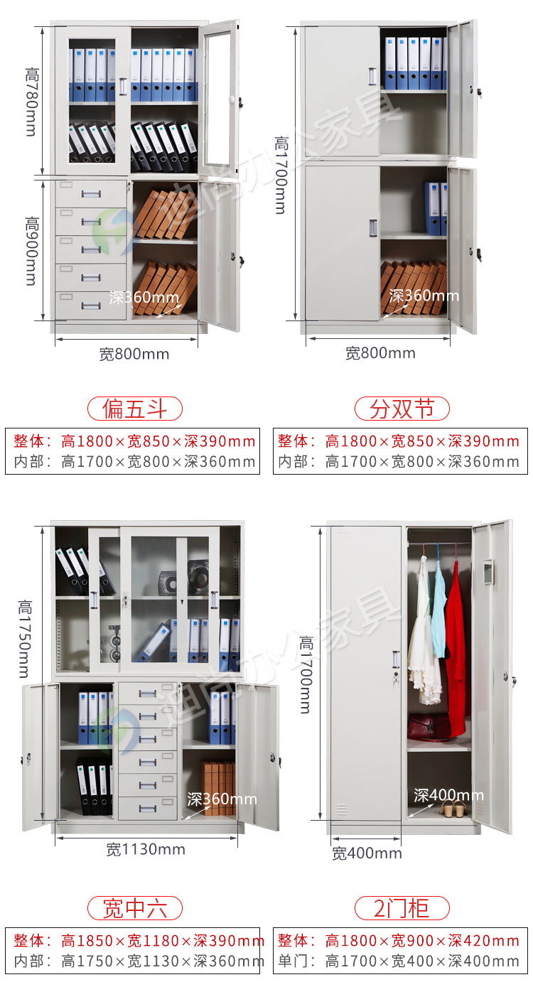 采用优质冷轧钢板经剪切,冲压,折弯,焊接,装配等九工位精制而成 采用自动喷淋式磷化 粉末静电喷涂,涂膜不易脱落,环保耐用,无毒害,无气味,光洁美观 外观精美,安全系数良好 坚固耐用,承受力强,可存放大量文件资料不变形
