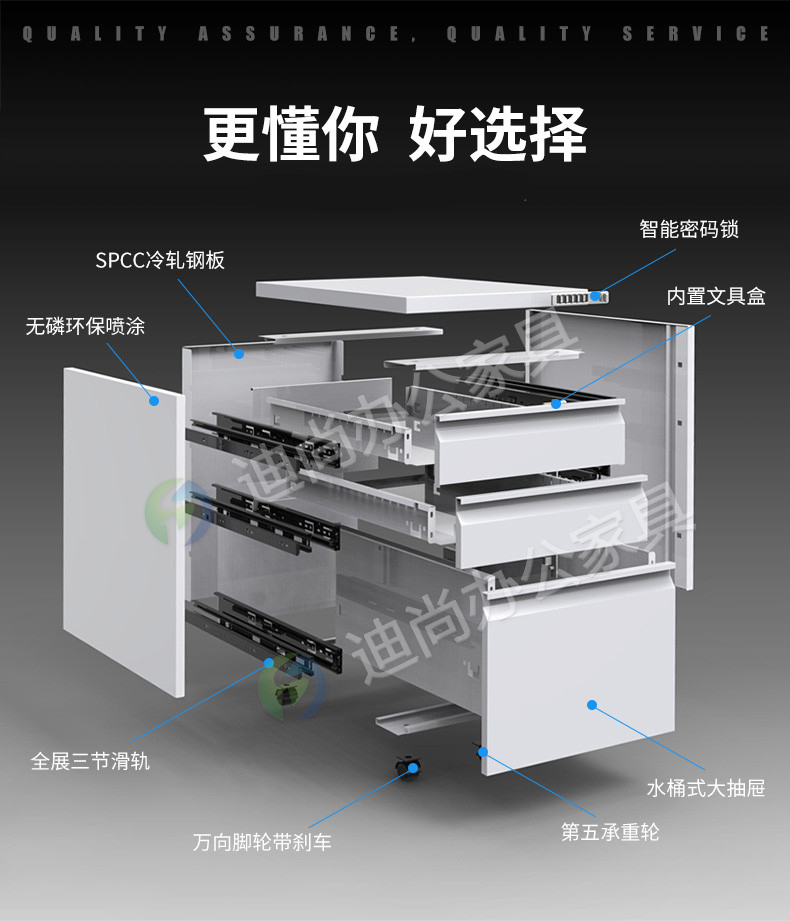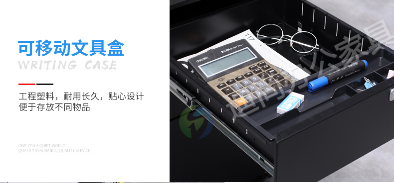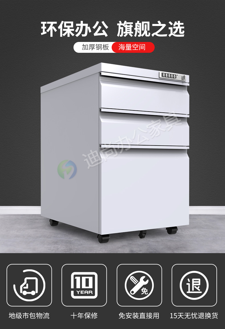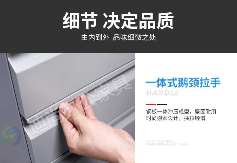 采用优质冷轧钢板经剪切,冲压,折弯,焊接,装配等九工位精制而成 采用自动喷淋式磷化 粉末静电喷涂,涂膜不易脱落,环保耐用,无毒害,无气味,光洁美观 外观精美,安全系数良好 坚固耐用,承受力强,可存放大量文件资料不变形
