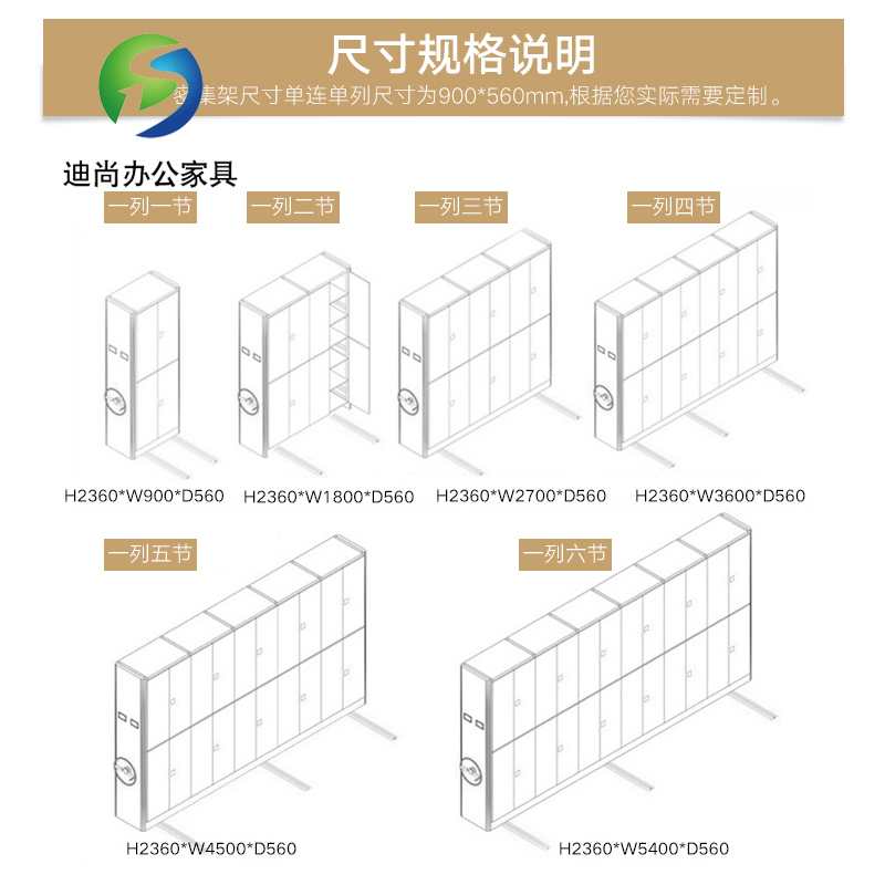 节型、架宽、层数和列数均可按用户需求选定 每列密集架均装有制动装置,开闭方便。开架查取资料只需按下制动把手,架体不会被他人移动,可有效保证查阅人员的人全 集架采用整块经过巧妙设计的侧板代替立柱 采用白色或黑色圆盘及手摇杆,只用两个手指即可转动整列密集架,轻便灵活