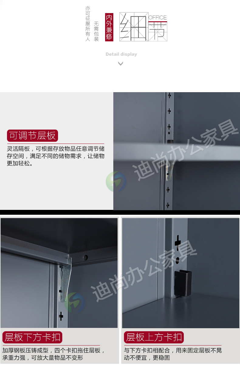 采用优质冷轧钢板经剪切,冲压,折弯,焊接,装配等九工位精制而成 采用自动喷淋式磷化 粉末静电喷涂,涂膜不易脱落,环保耐用,无毒害,无气味,光洁美观 外观精美,安全系数良好