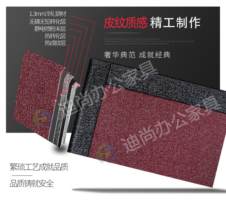 采用优质冷轧钢板经剪切,冲压,折弯,焊接,装配等九工位精制而成 采用自动喷淋式磷化 粉末静电喷涂,涂膜不易脱落,环保耐用,无毒害,无气味,光洁美观 外观精美,安全系数良好