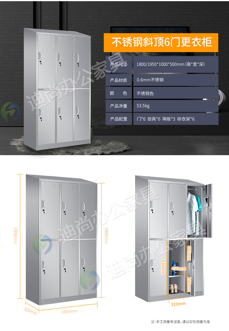 不锈钢斜顶六门衣柜