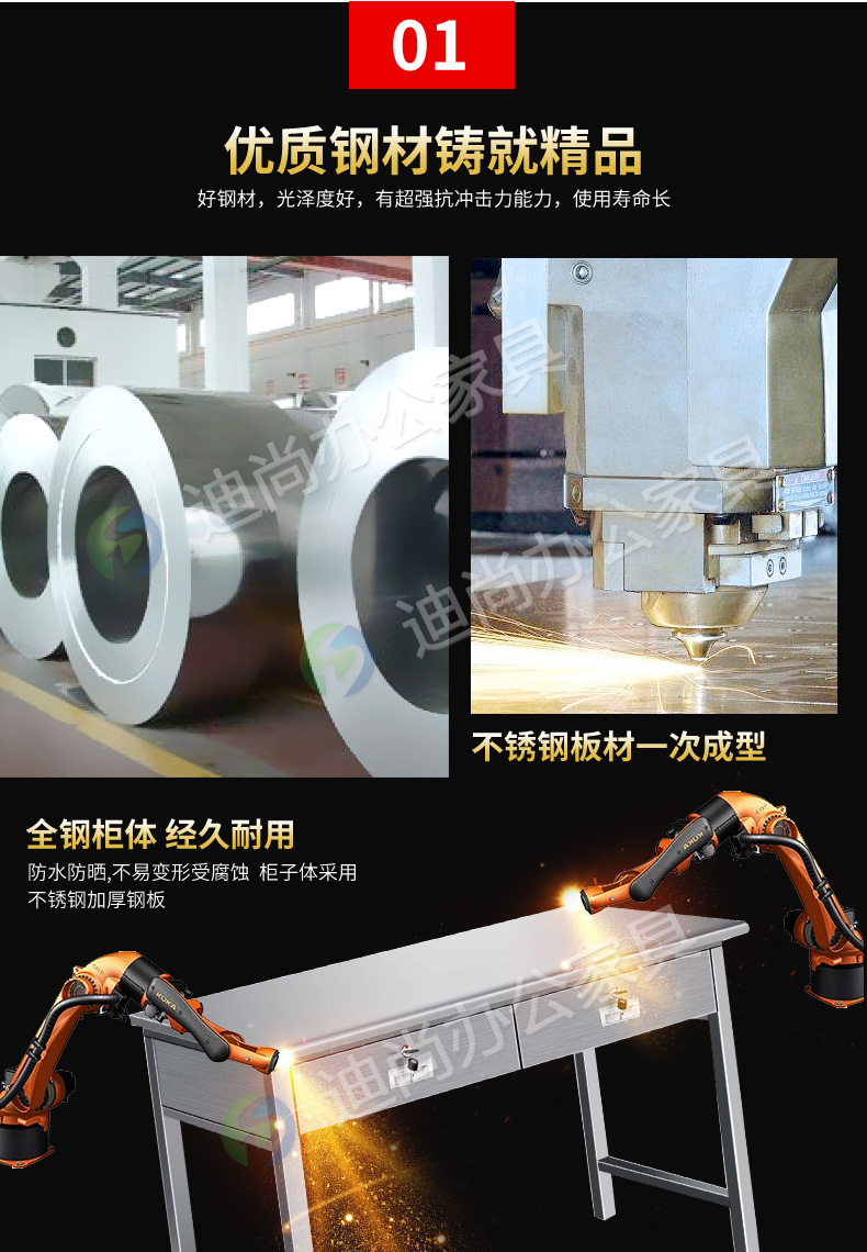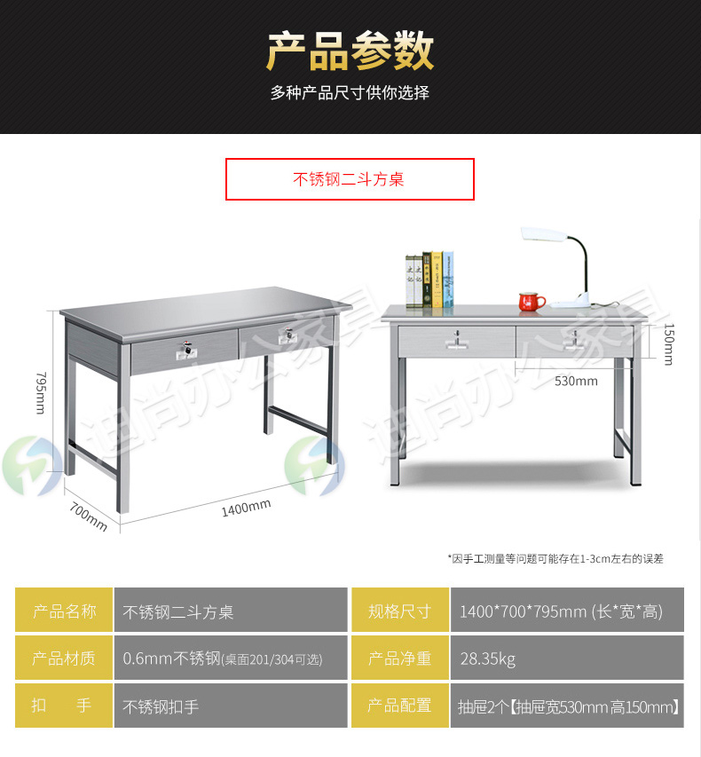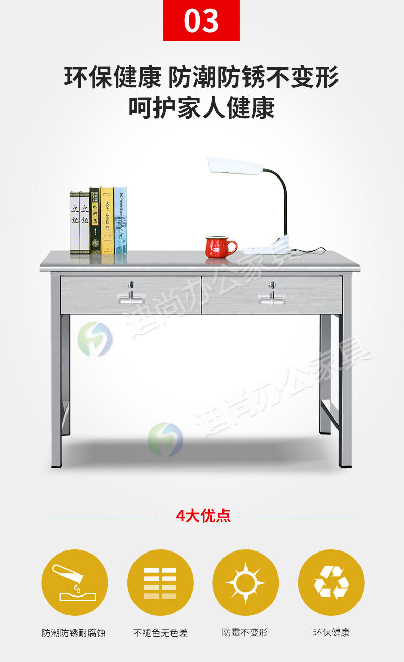 不锈钢二斗办公桌