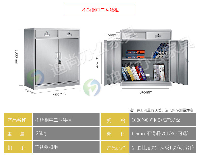 不锈钢中二斗矮柜