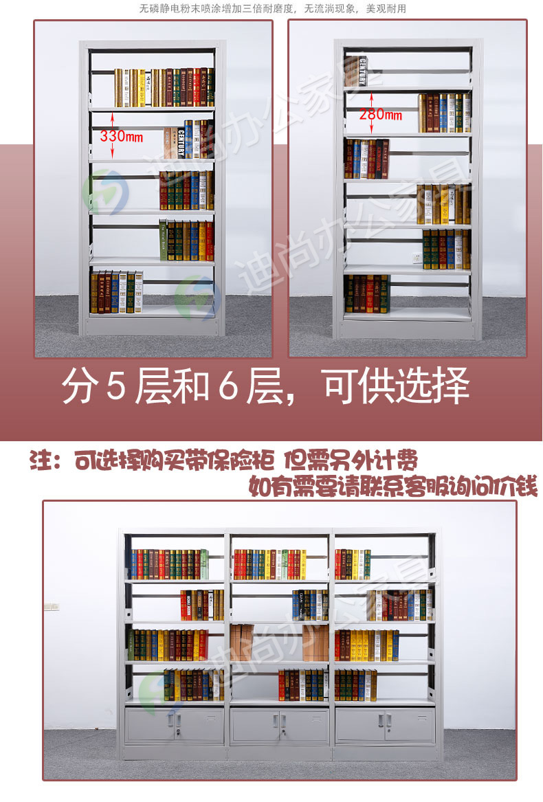 采用优质冷轧钢板经剪切,冲压,折弯,焊接,装配等九工位精制而成 采用自动喷淋式磷化 粉末静电喷涂,涂膜不易脱落,环保耐用,无毒害,无气味,光洁美观 外观精美,安全系数良好 坚固耐用,承受力强,可存放大量文件资料不变形