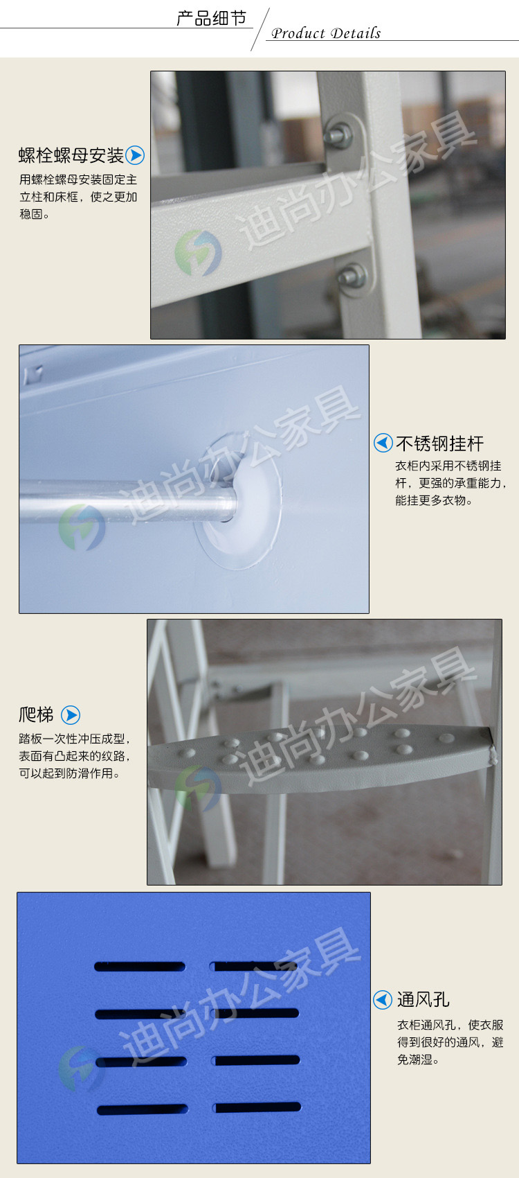 采用优质冷轧钢板经剪切,冲压,折弯,焊接,装配等九工位精制而成 采用自动喷淋式磷化 粉末静电喷涂,涂膜不易脱落,环保耐用,无毒害,无气味,光洁美观 外观精美,安全系数良好 坚固耐用,承受力强,可存放大量文件资料不变形