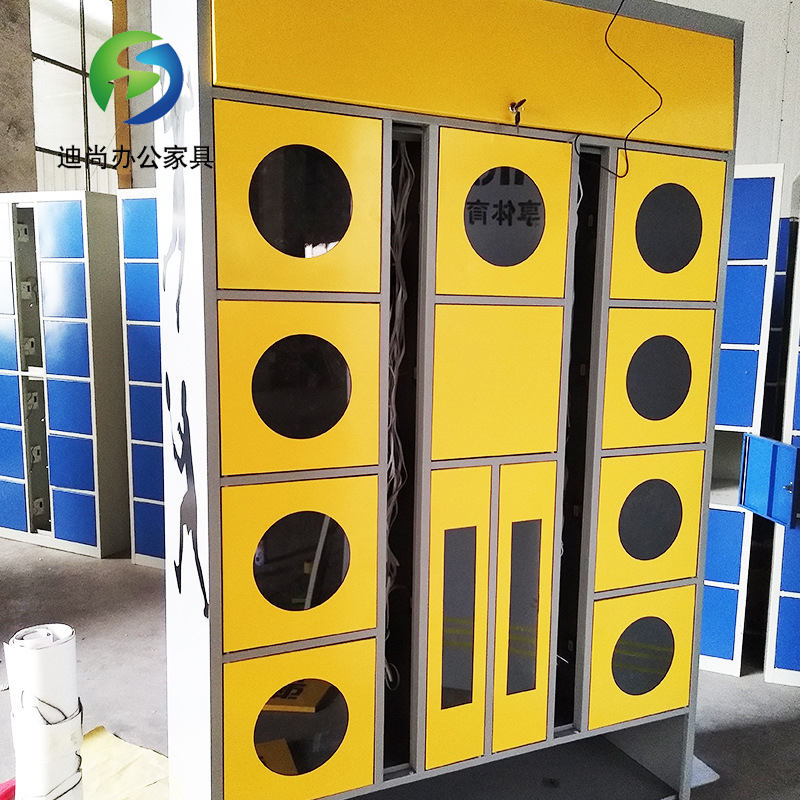 投放学校、实现收益 采用优质冷轧钢板经剪切,冲压,折弯,焊接,装配等九工位精制而成 采用自动喷淋式磷化 粉末静电喷涂,涂膜不易脱落,环保耐用,无毒害,无气味,光洁美观 外观精美,安全系数良好 坚固耐用,承受力强,可存放大量物品不变形