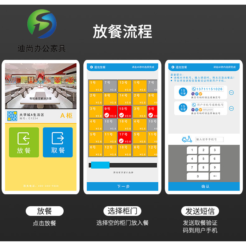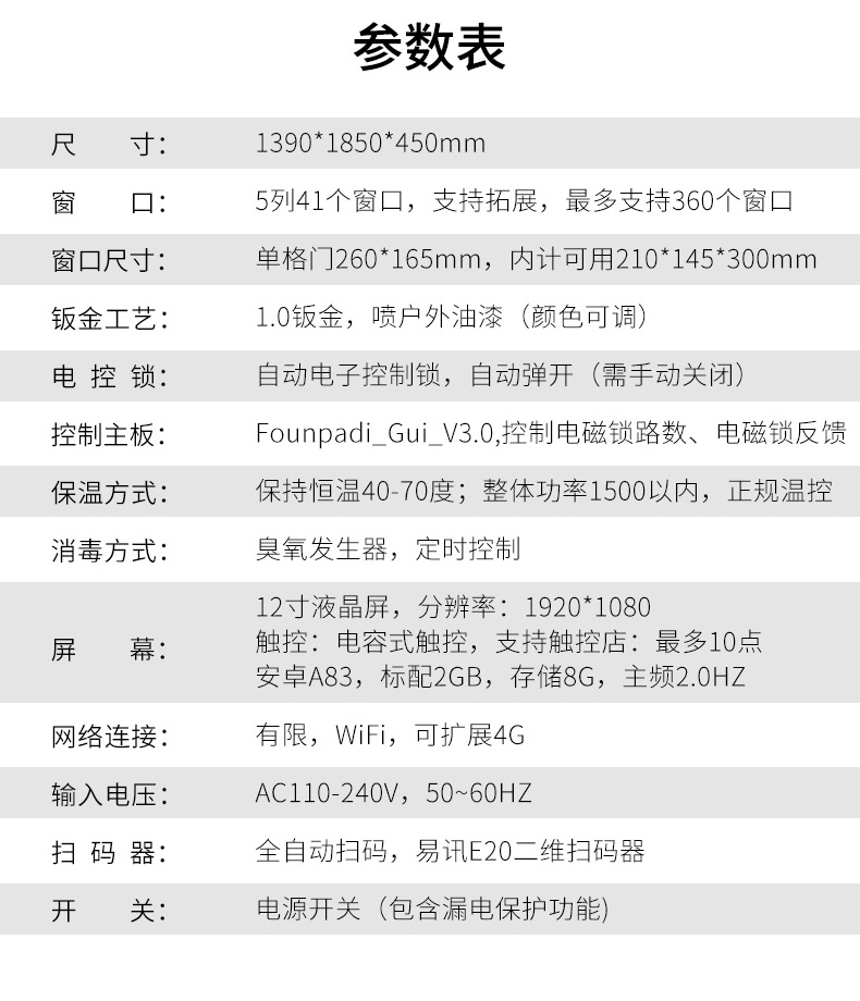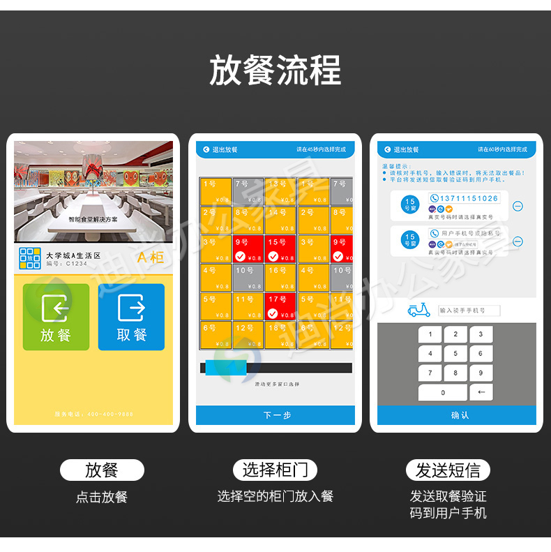 实现外卖存取、保鲜保温等功能 采用优质冷轧钢板经剪切,冲压,折弯,焊接,装配等九工位精制而成 采用自动喷淋式磷化 粉末静电喷涂,涂膜不易脱落,环保耐用,无毒害,无气味,光洁美观 外观精美,安全系数良好 坚固耐用,承受力强,可存放大量物品不变形