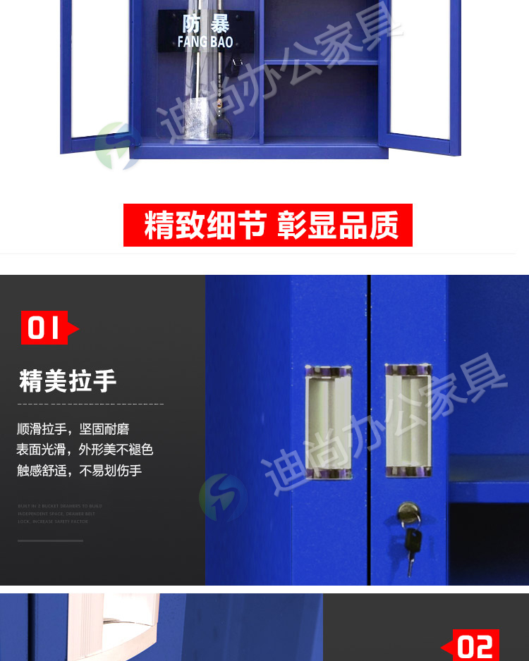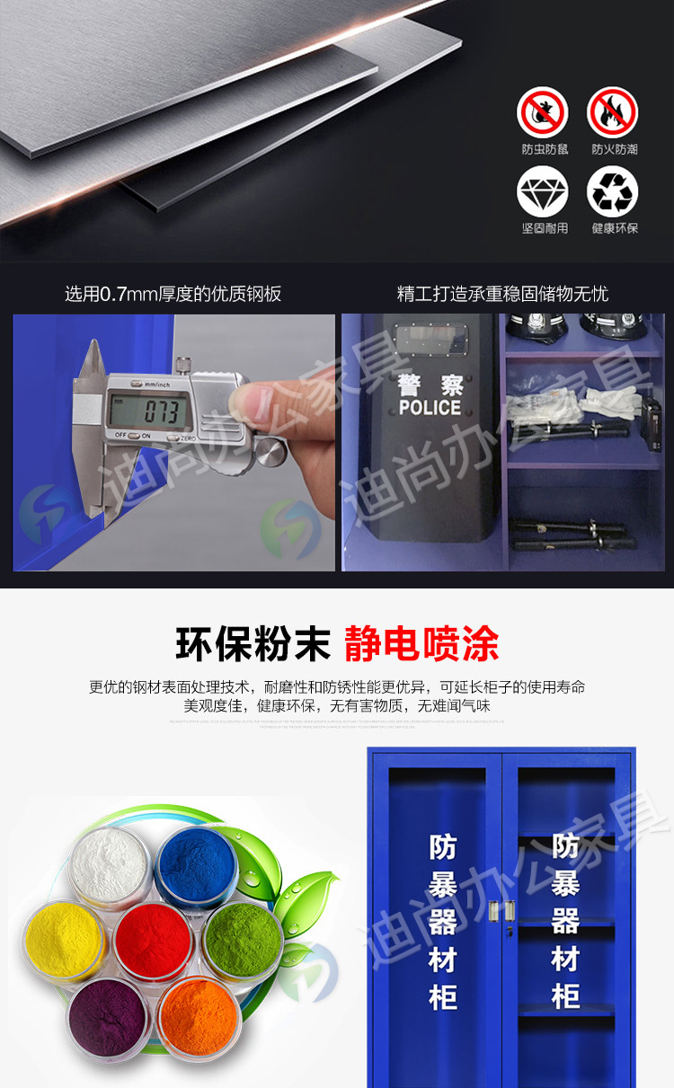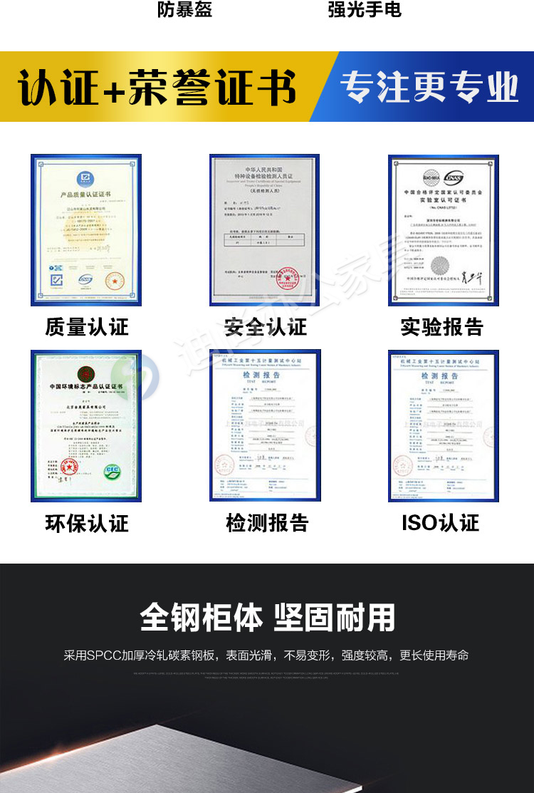 防爆器材专用柜 采用优质冷轧钢板经剪切,冲压,折弯,焊接,装配等九工位精制而成 采用自动喷淋式磷化 粉末静电喷涂,涂膜不易脱落,环保耐用,无毒害,无气味,光洁美观 外观精美,安全系数良好 坚固耐用,承受力强,可存放大量文件资料不变形