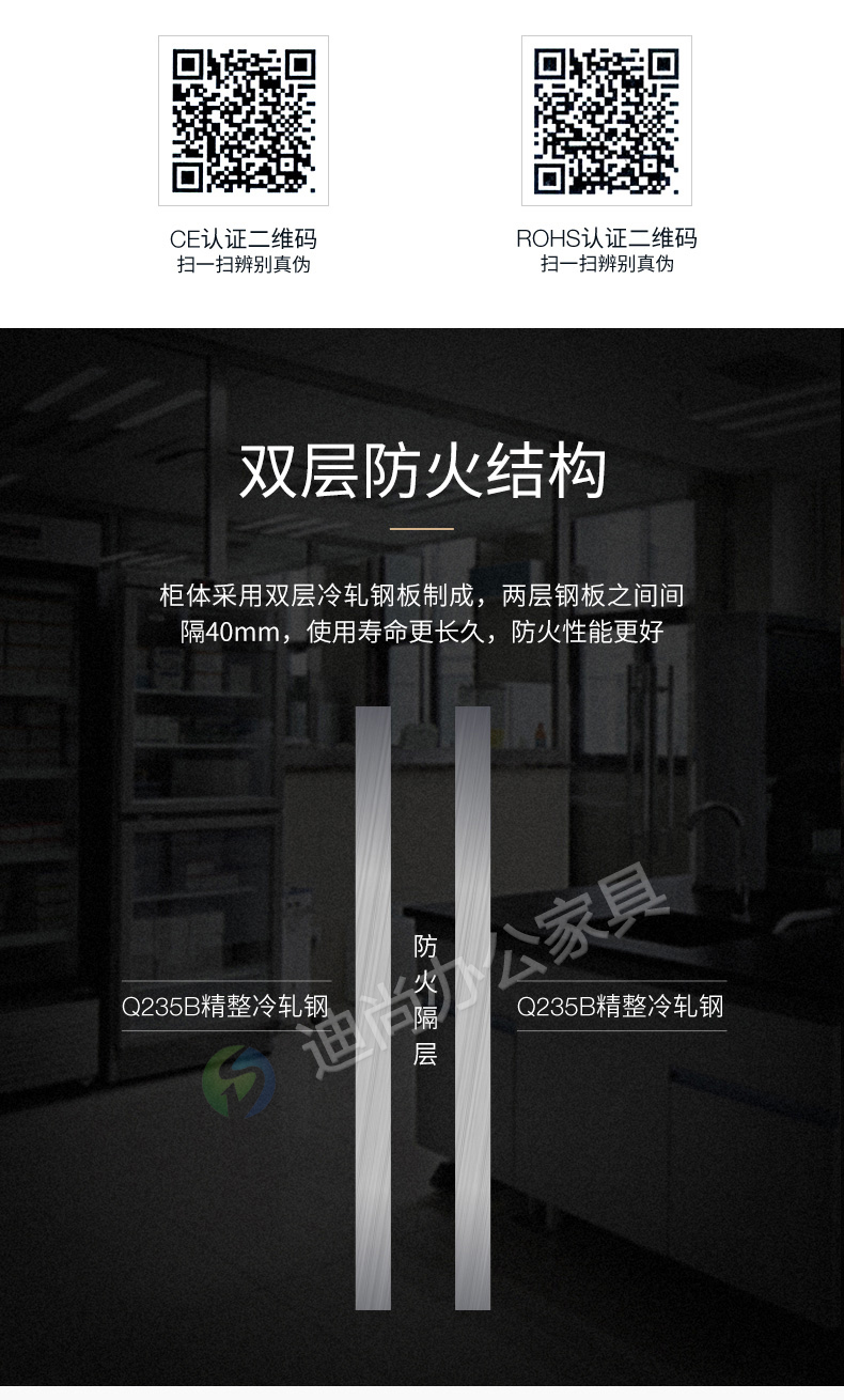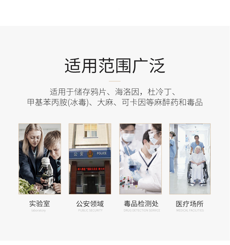 适用范围:实验室、医疗场所、毒品检测处、公安领域等 采用优质冷轧钢板经剪切,冲压,折弯,焊接,装配等九工位精制而成 采用自动喷淋式磷化 粉末静电喷涂,涂膜不易脱落,环保耐用,无毒害,无气味,光洁美观 外观精美,安全系数良好 坚固耐用,承受力强,可存放大量文件资料不变形