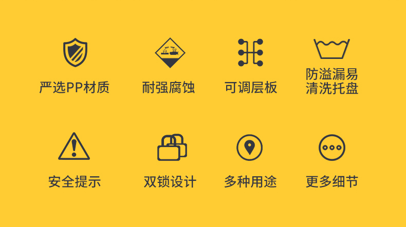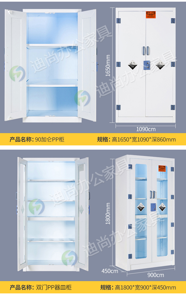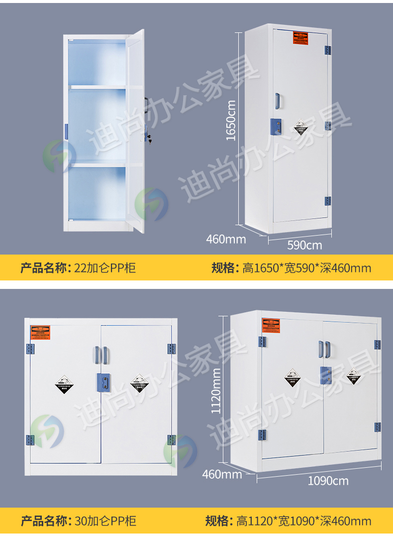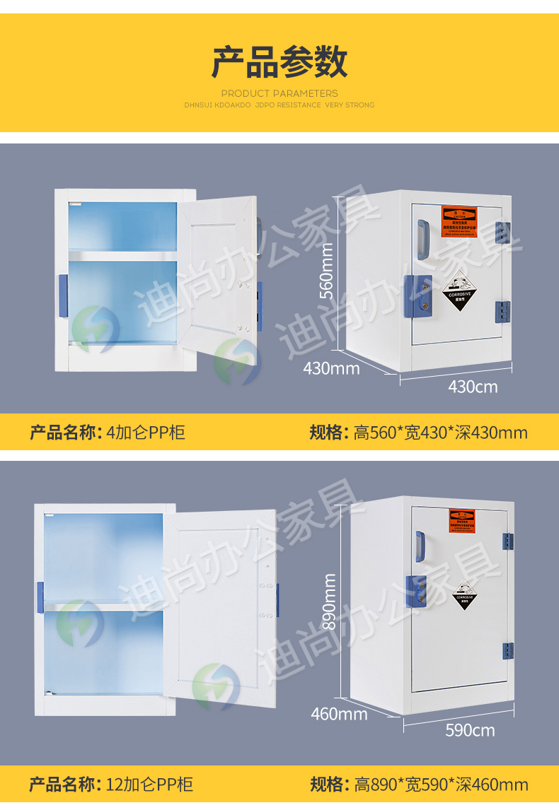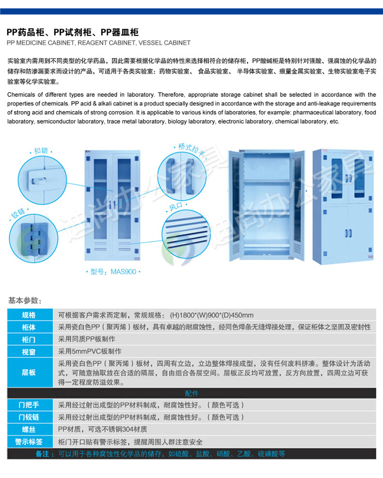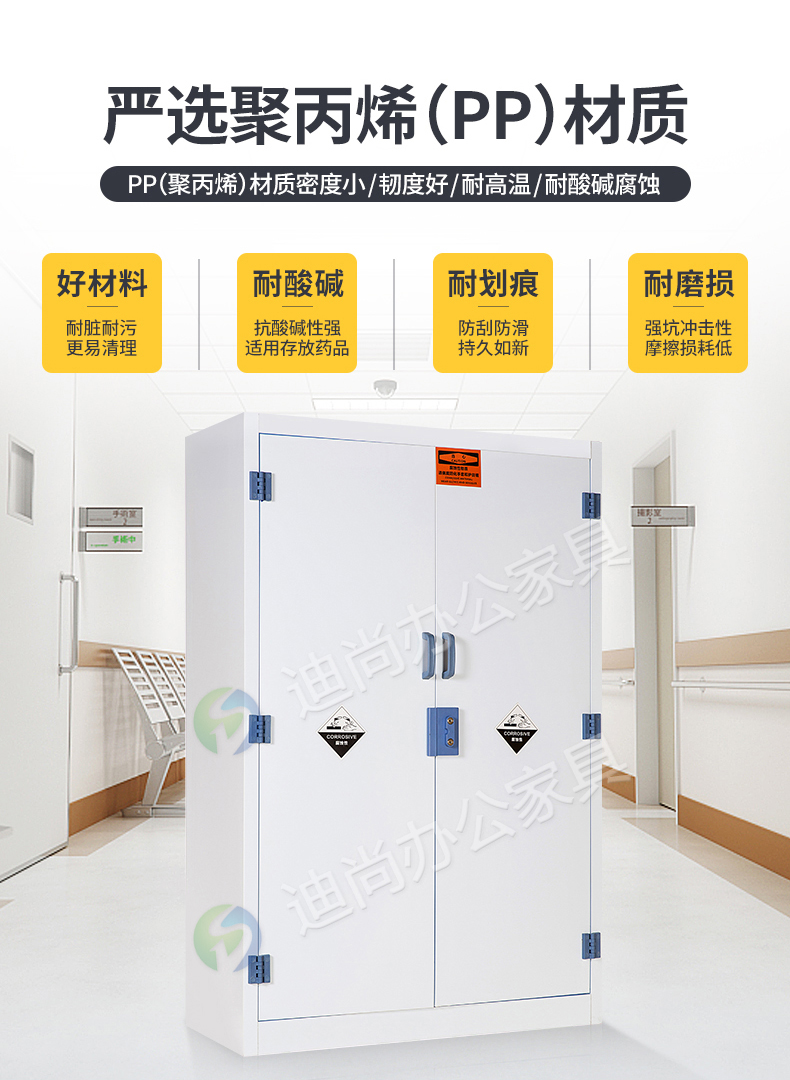 适用范围:实验室、医疗场所等 强酸强碱存储柜,特别针对强腐蚀性化学品的存储和渗漏而设计,可用于各种腐蚀性化学品的存储